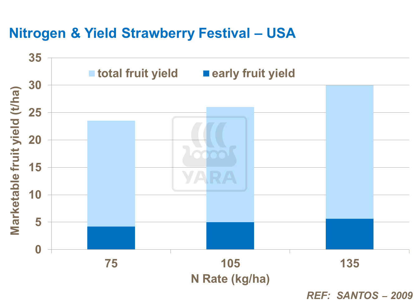 Azotul este esențial pentru creșterea plantelor fiind unul dintre principalele constituent al proteinelor. Este important pentru producția de biomasă și producția de fructe, maximizând asimilarea fotosintetică, conducând la randamente ridicate de căpșuni.
