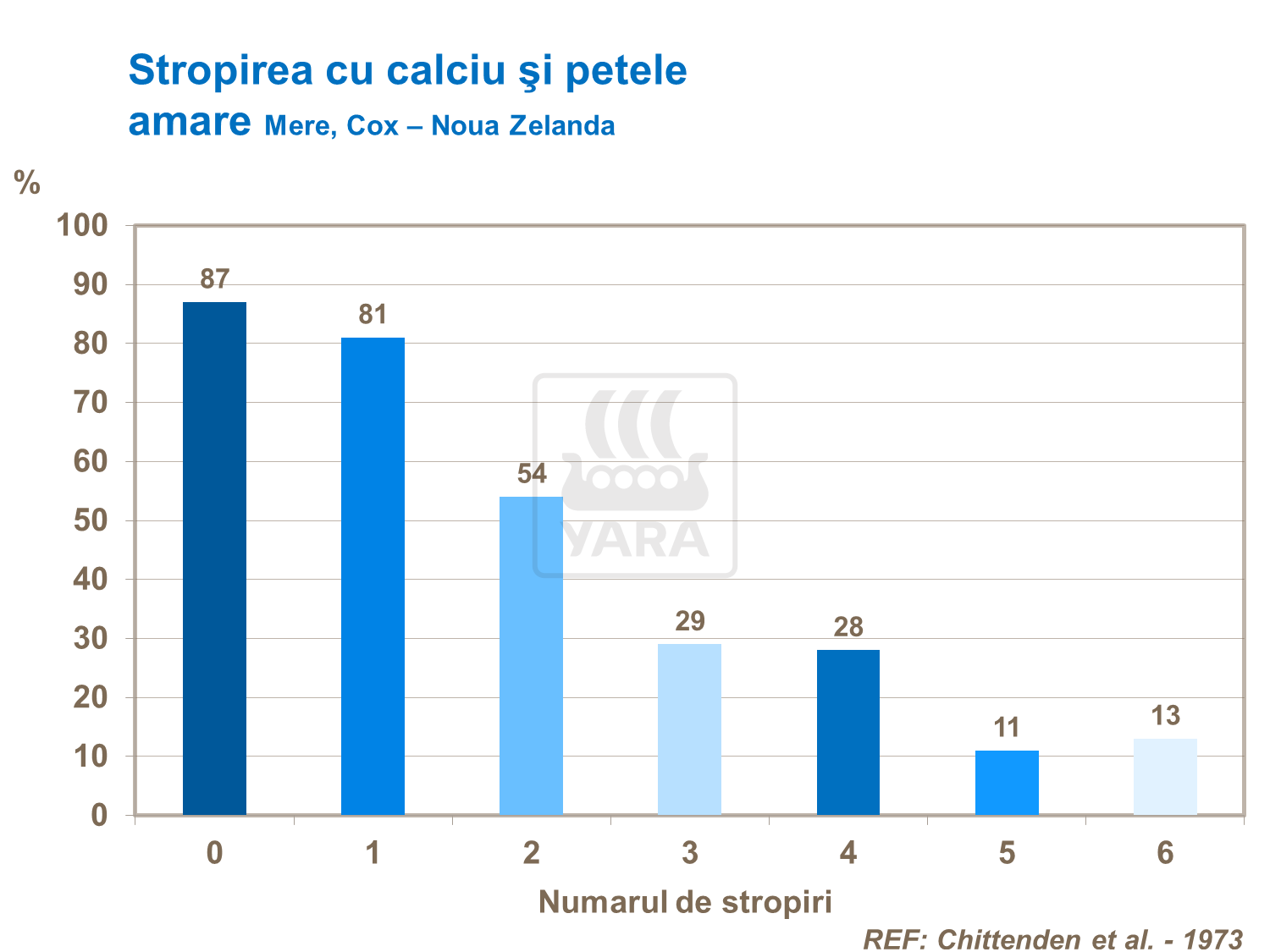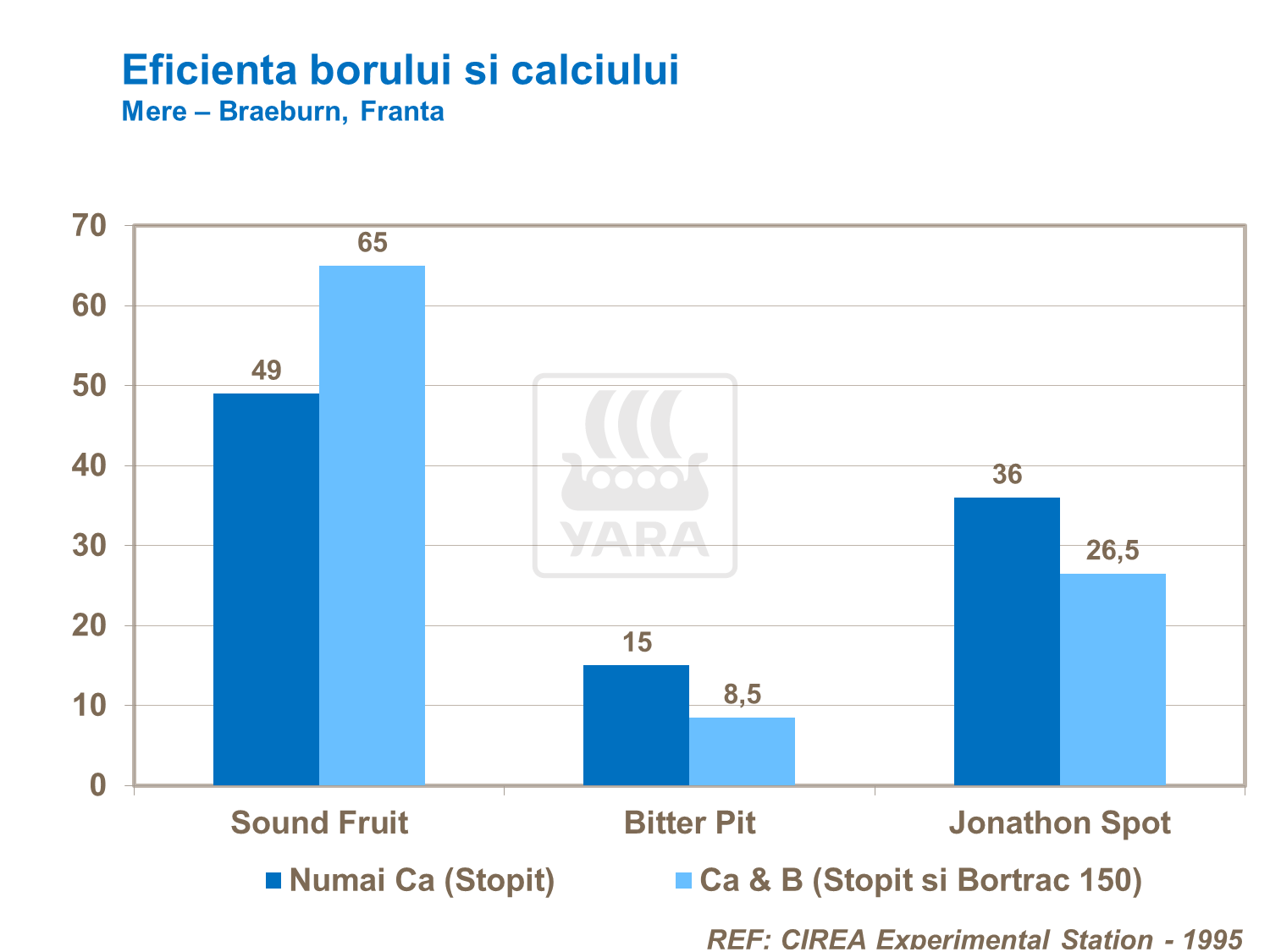Programul de stropire a borului ajută de asemenea asimilarea calciului, care în cazul merelor reduce riscul apariţiei petelor amare şi petele Jonathan.