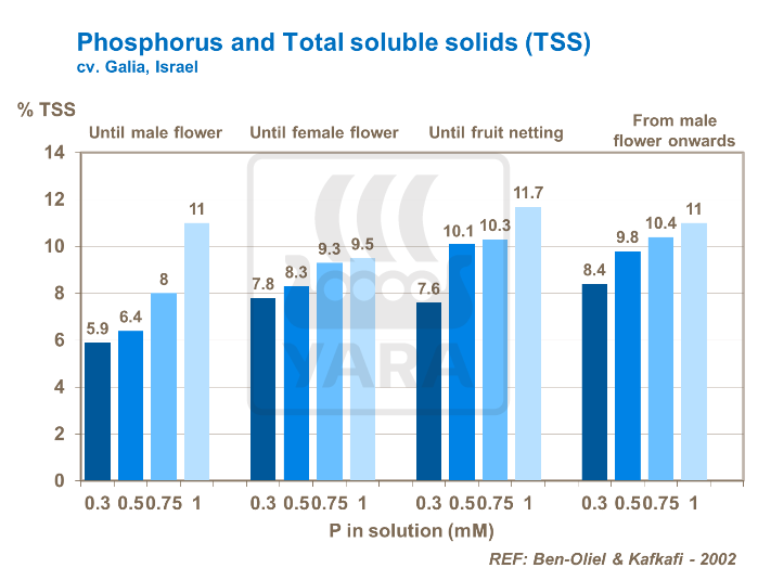 Consumul de fosfor pe tot parcursul sezonului contribuie la asigurarea producției de fructe de înaltă calitate cu conținut ridicat de zahăr.