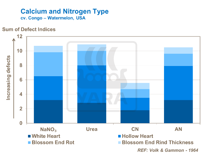 O competiție a cationilor, ca rezultat al utilizării excesive a amoniului ca sursă principală de azot, crește semnificativ incidența putrezirii(BER). Încercările confirmă faptul că azotatul de calciu este deosebit de eficient în asigurarea unei calități bune a fructelor, de asemenea în minimizarea putregaiului de flori.