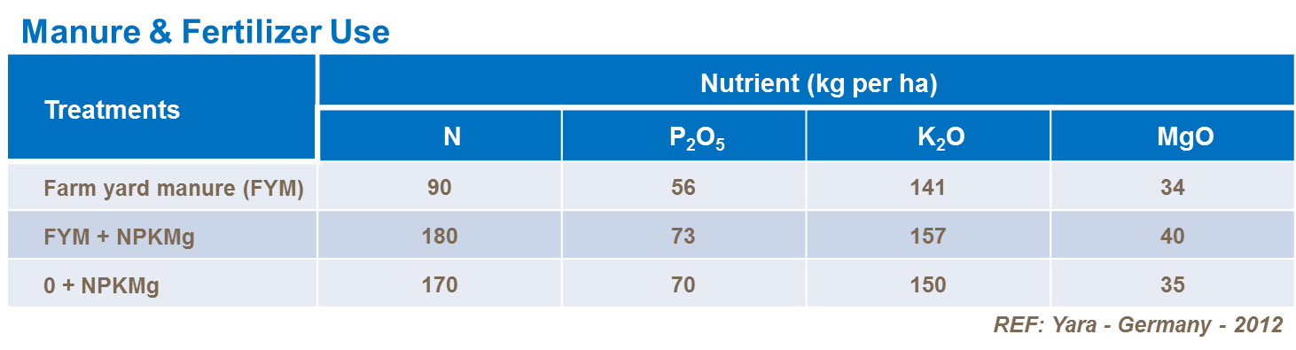 În cadrul elaborării planului de fertilizare trebuie luate în considerare materiile care se sedimentează în acest fel. Nutrienţii care lipsesc trebuie completaţi, iar experimentele efectuate au dovedit că datorită utilizării îngrăşămintelor de origine animală planta reacţionează altfel la îngrăşămintele chimice.