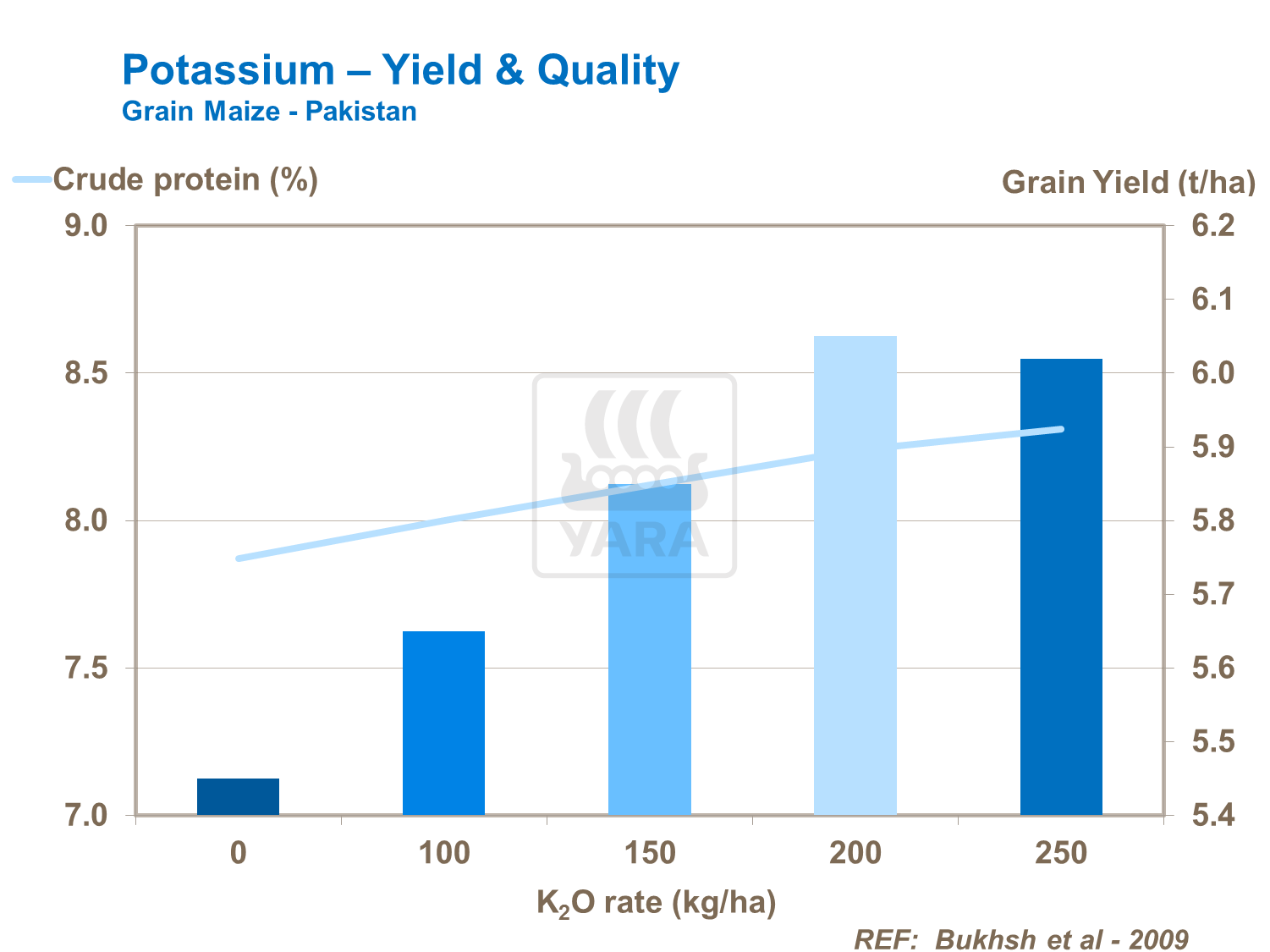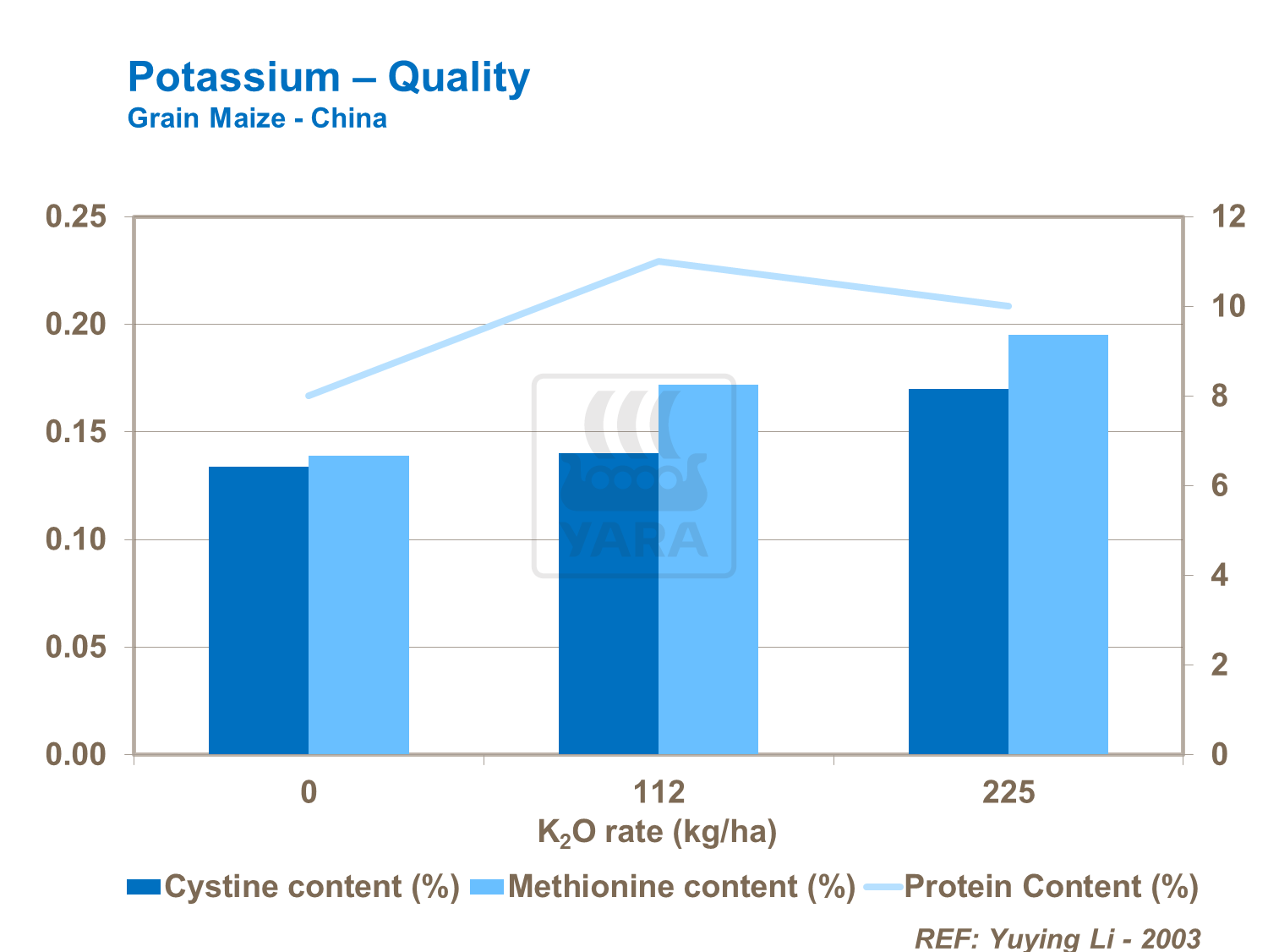 Cantitatea corespunzătoare de potasiu creşte conţinutul de proteine al boabelor de porumb, precum şi cantitatea aminoacizilor cisteină şi metionină.