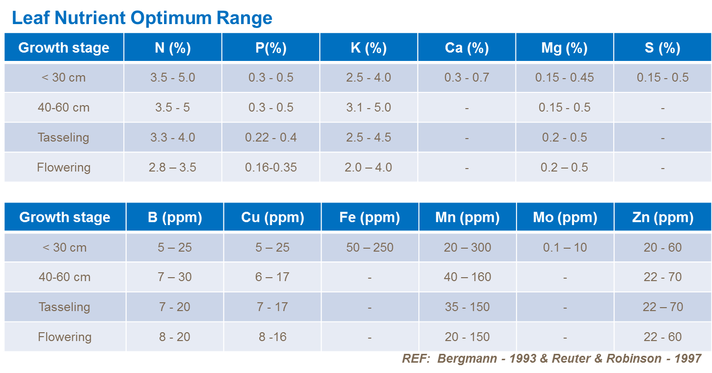 O analiză a ţesuturilor dovedeşte că în vederea obţinerii unui randament maxim respectarea echilibrului dintre elementele din cadrul planului de fertilizare este important. Analiza ţesuturilor confirmă simptomele vizibile, descoperă bolile ascunse care încă nu au produs simptome vizibile, şi arată concentraţiile excesive de nutrienţi care pot fi favorabile în cazul altor nutrienţi - de exemplu un conţinut prea mare de fosfor şi prea mic de zinc.