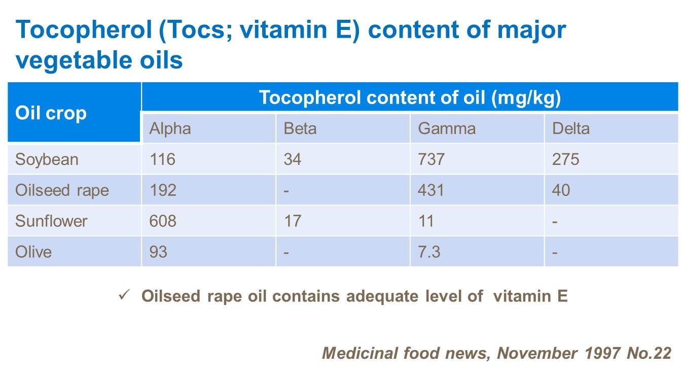Uleiul de rapiță a fost considerat anterior nefavorabil pentru dieta umană datorită conținutului ridicat de acid erucic care a produs gust neplăcut și efecte nedorite. Programele de hibridare au diminuat acidul erucic de la 40% la 0%, în timp ce acizii grași polinesaturați (acidul linoleic și acidul linolenic) din totalul acizilor grași au crescut de la 15% la 20% și de la 8% la 12%.