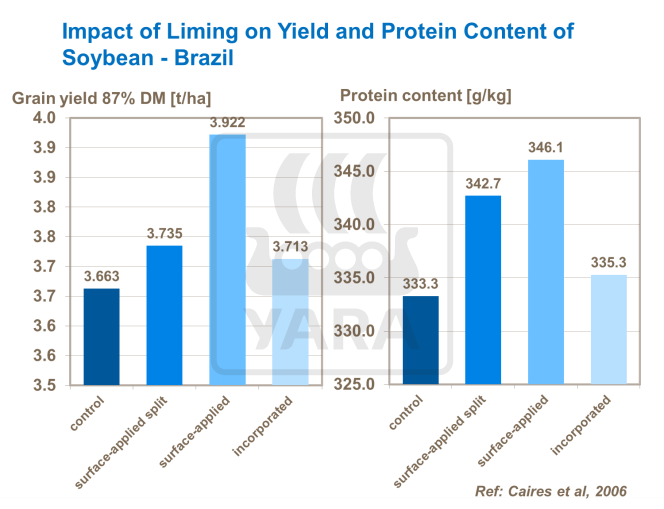 În Brazilia, au fost observate creșteri ale producției de soia în solurile limpezite ca urmare a creșterii pH-ului, reducerea toxicității Al și Mn, creșterea absorbției N, P, K și S și a aportului de Ca și Mg.