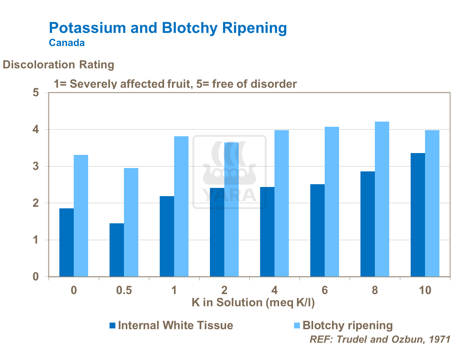 Acest lucru este în mod normal asociat cu o nutriție insuficientă de potasiu, deși alți factori cauzali sunt scăderea luminii / temperatură înaltă și deficiența de bor.
