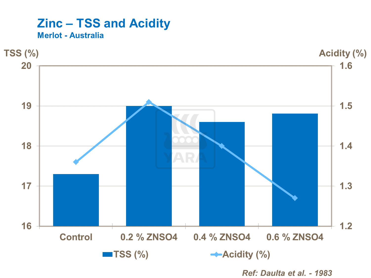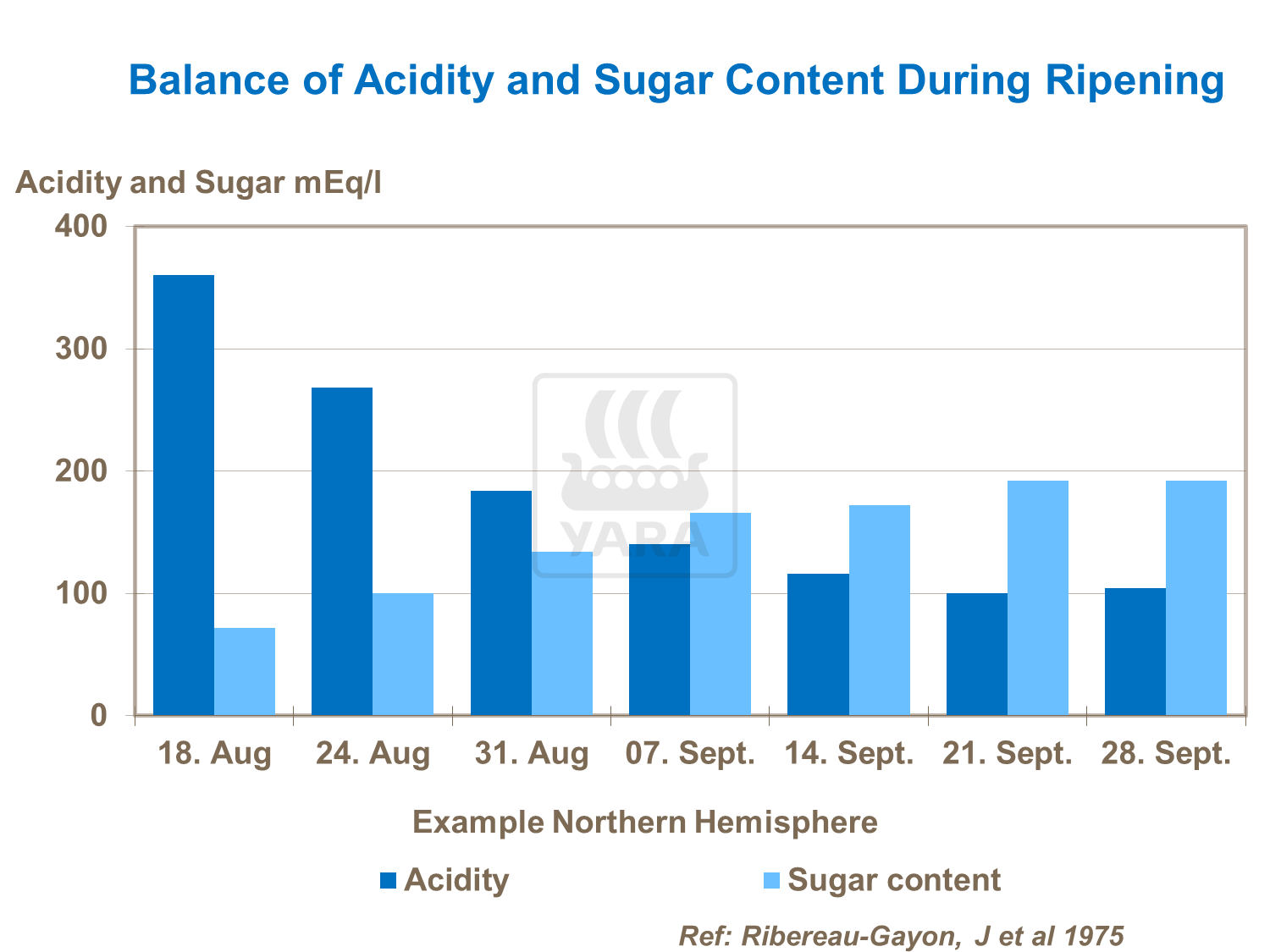 Nutritia culturilor este foarte importantă pentru formarea acizilor malic și tartric. Aplicările de potasiu servesc la creșterea concentrației de malat și potasiu în boabe.