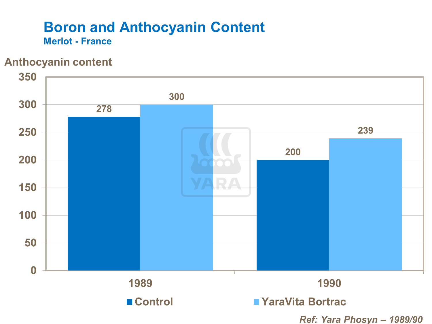 Folosirea îmgrăşămintelor foliare cu bor la începutul înfloririi și la legarea fructelor poate crește conținutul de antociani, îmbunătățind culoarea vinului.