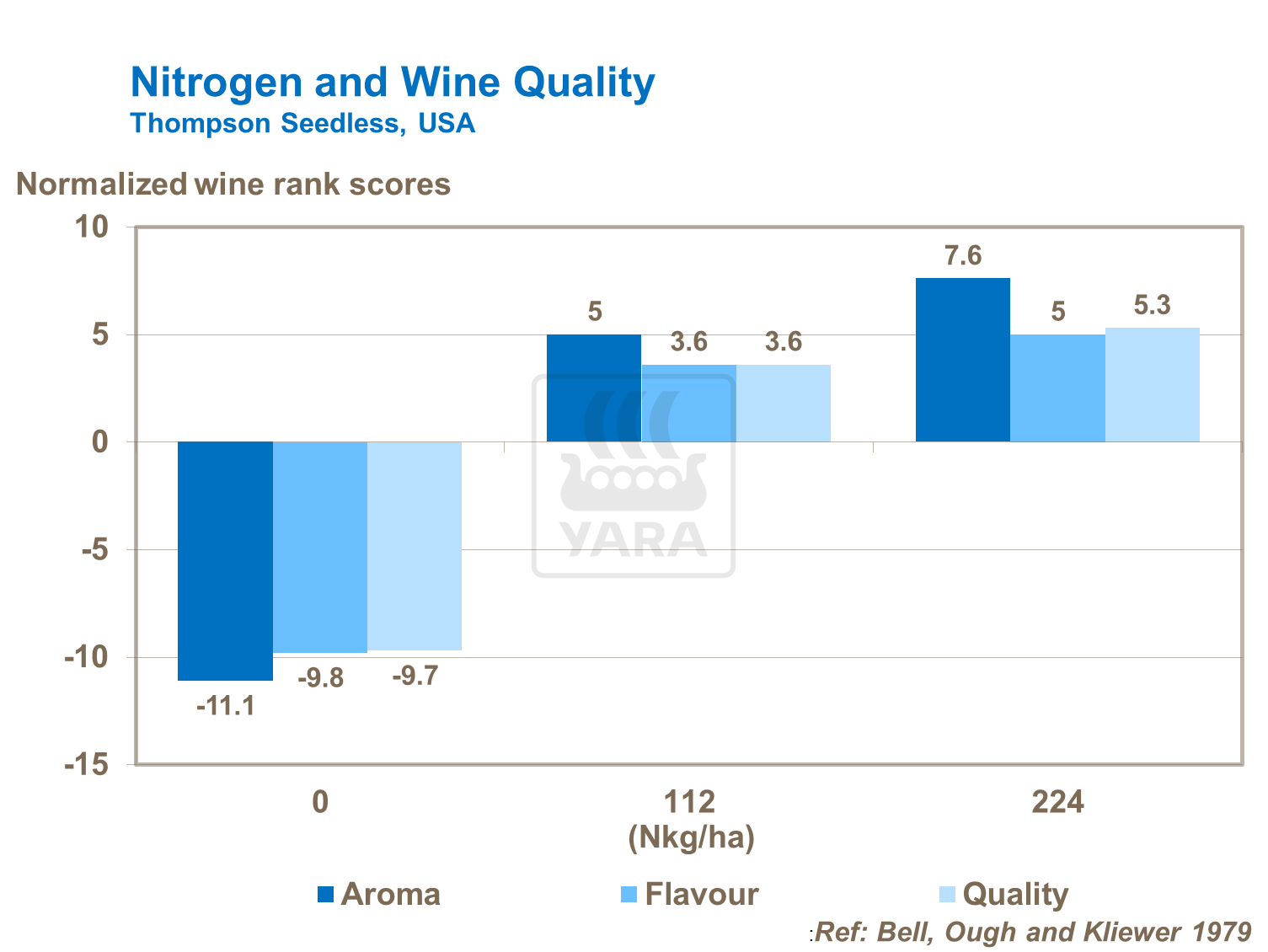 Fertilizarea cu azot poate influența pozitiv scorul de calitate a aromelor, savorii și vinului. Forma corectă a azotului este deosebit de importantă în acest sens. Studiile arată că azotul liber al aminoacidului poate crește aroma vinului.