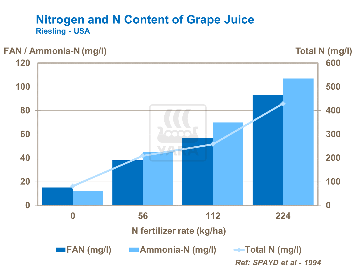 Conținutul total de azot, precum și concentrația de arginină, sunt direct influențate de calendarul aplicării îngrășămintelor azotate pe vița de vie. Ca și în cazul potasiului, echilibrul corect al azotului pentru creșterea viței și dezvoltarea strugurilor este important.