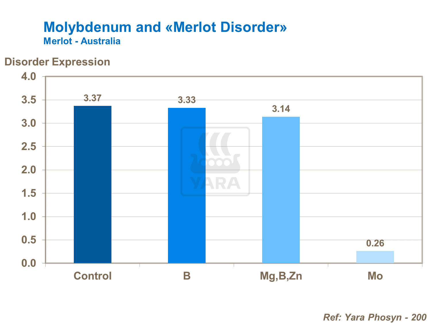 Viile tinere cu niveluri ridicate de nitrați în țesuturi, mor sau rămân neproductive de-a lungul vieții viței. Dereglarea este cunoscută sub numele de "Dereglarea Merlot". Simptomele "Dereglării Merlot" sunt frunze mai mici decât de obicei, arderea frunzelor, culoarea săracă a frunzelor și lemnul nu reușește să se maturizeze. Aplicarea molibdenului a redus semnificativ nivelul de dereglare.